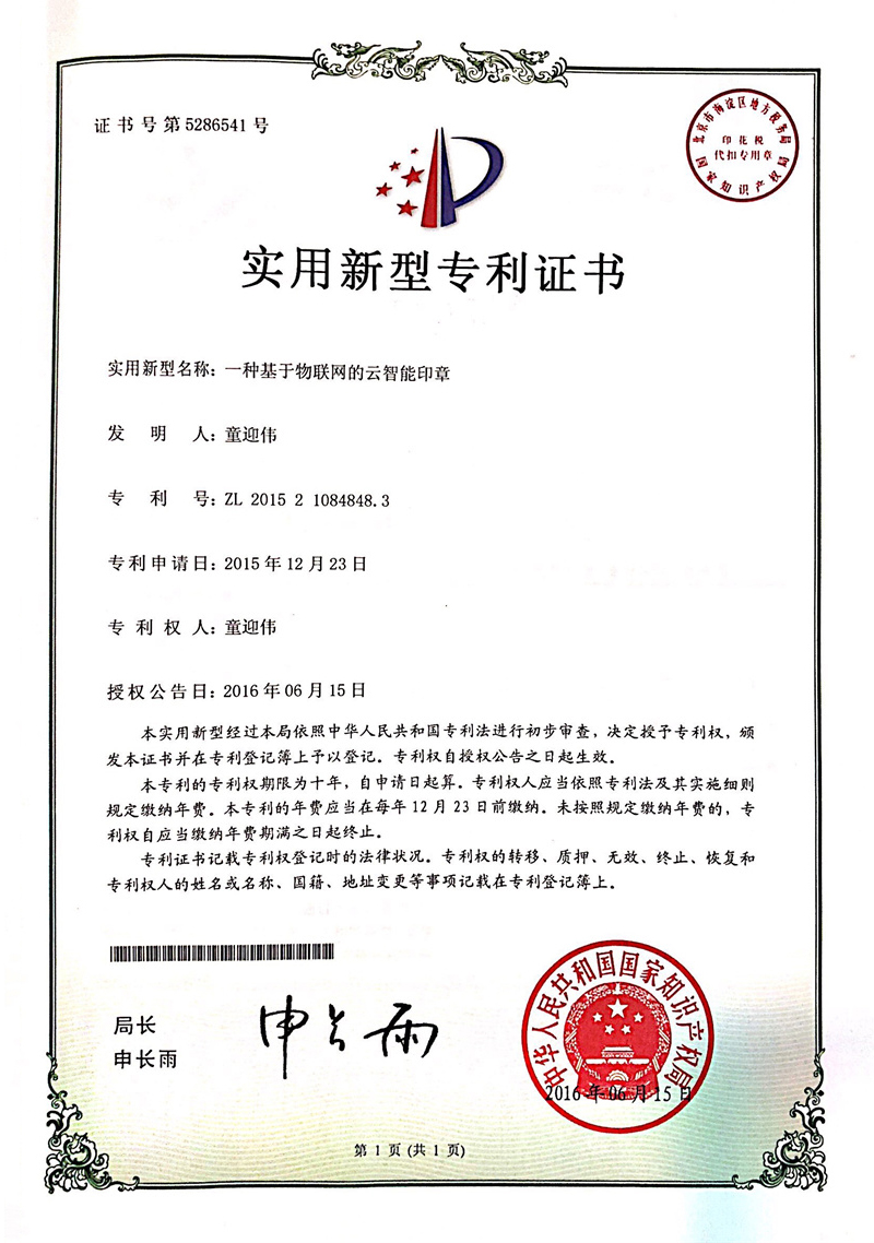 公司原創發明一體式智能印章技術,引領國內外新一代智能印簽創新變革。獲中日韓多項發明專利,徹底解決了實體印章和電子印簽管控的社會難題,獲國務院國資委全國央企熠星二等獎。公司聯合國家信息安全產品認證中心、公安部三所、信通院、中國印章協會等,主導起草了行業首個智能印章安全認證標準和智能印章產品標準,引領了智能印章行業發展。
